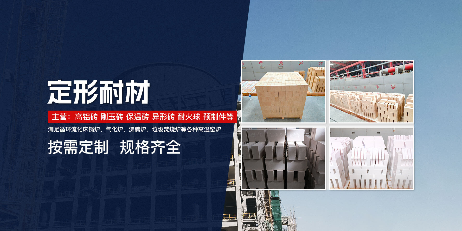 剛玉莫來石磚 高鋁磚 保溫磚 粘土磚 澆注料 可塑料 搗打料/抹面料 耐火球/預制件 新型環保耐材